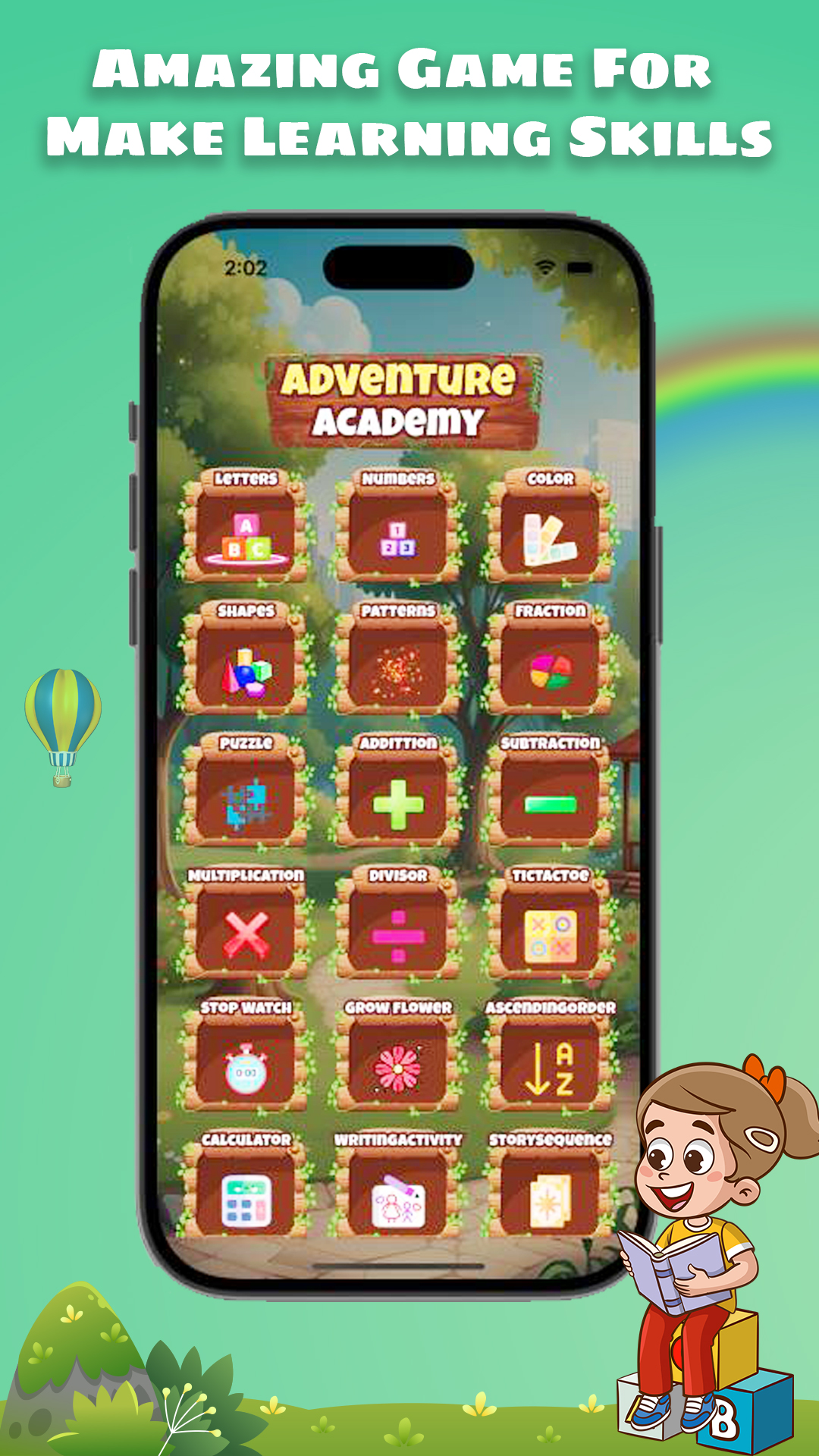 Kids learn naturally with interactive animations and fun tasks.